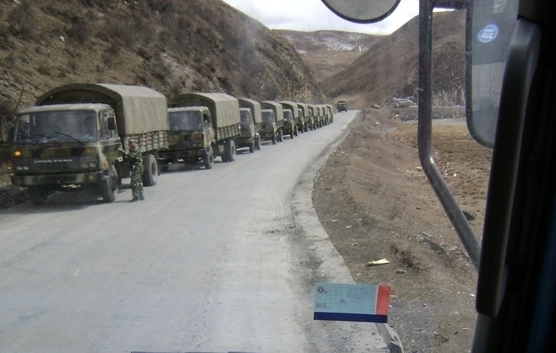 On April 3rd, 2008, a Chinese military convoy was photographed en route to the site of a demonstration in Serthar, Kham Tibet (Tib: གསེར་ཐར་རྫོང་། Ch: 色达县 Seda County, Sichuan Province). Photos courtesy of TCHRD.